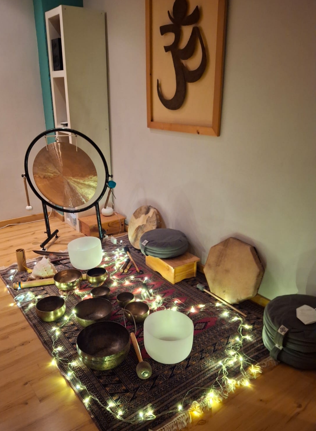 Els sons i ritmes harmònics i sanadors dels bols tibetans, del bol de quars, del gong, del tambor xamànic i d'altres instruments sanadors, ajuden a buidar la ment, a alliberar tensions, a aprofundir en un estat de meditació que augmenta i renova l'energia vital, i permet anar mantenint un major estat de serenor i equilibri.